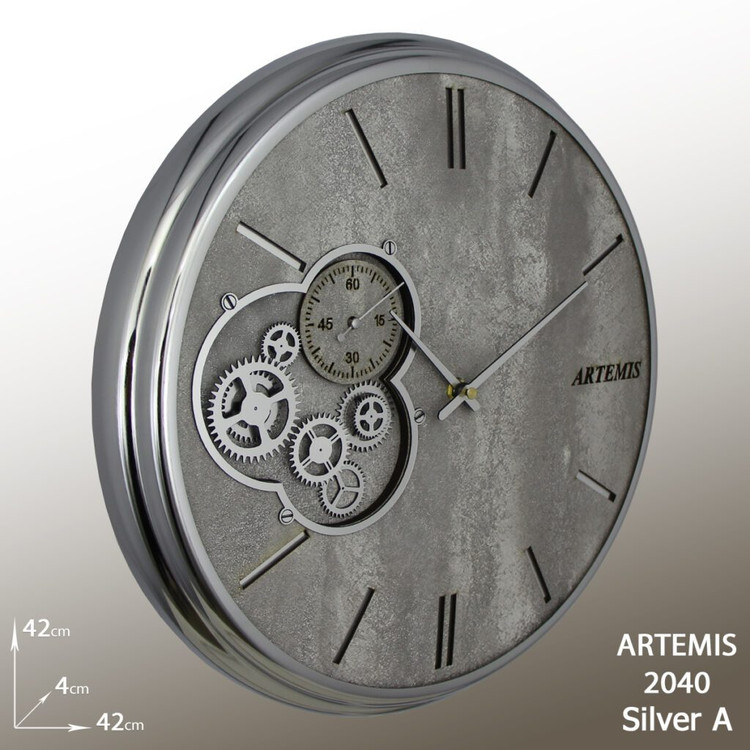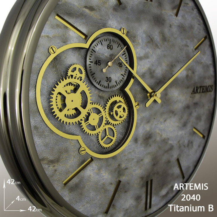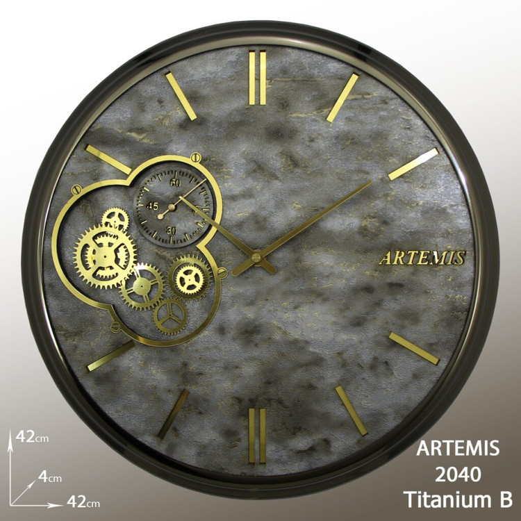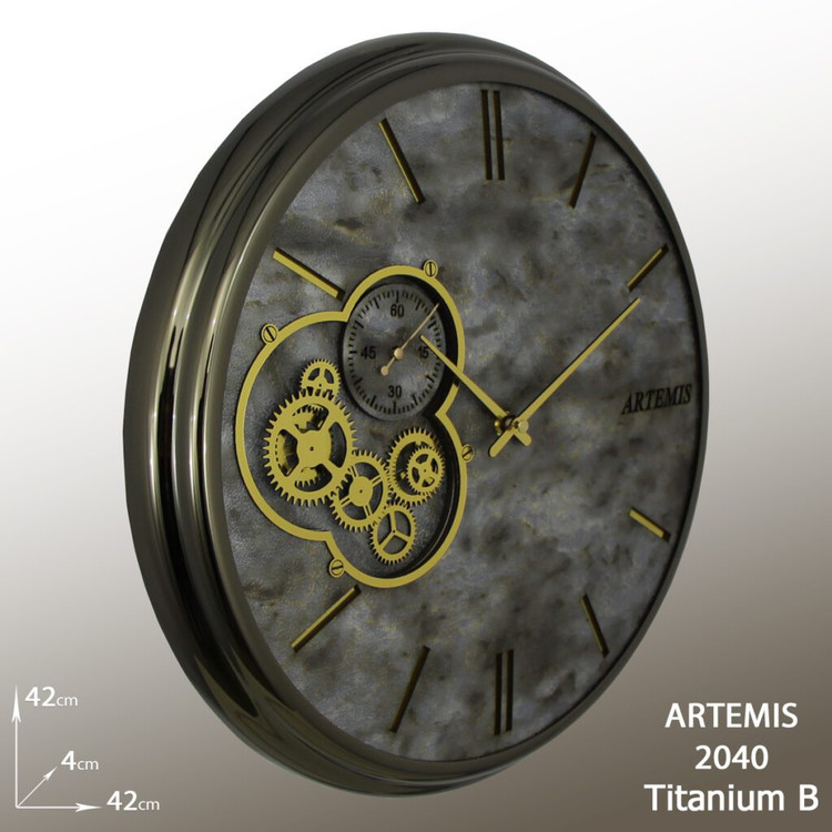 ساعت دیواری آرتمیس مدل 2040 تولید شده از فلز آبکاری شده و دارای ثبات رنگ و کیفیت بالا میباشد . این محصول در سه رنگ طلایی و نقره ای و دودی تیتانیوم در سایت تولیدی ساعت رضایی موجود میباشد .